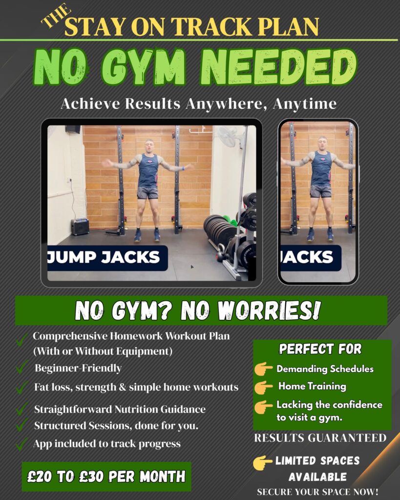 Nutrition: The Missing Piece to Real Results Training builds your fitness, but true transformation happens in the kitchen. That’s why we don’t leave your nutrition to chance. With most of our programs, you’ll get expert nutrition guidance as standard—including a detailed 4-week meal plan and access to over 1,000 simple, healthy recipes. No more guesswork, no boring diets—just real food that keeps you satisfied, energized, and on track. We make it easy to eat well, stay engaged, and see the results you want—inside and out